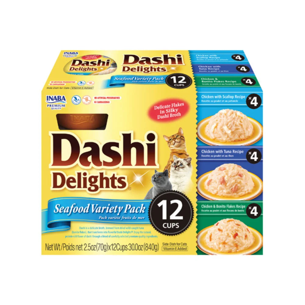 دللي قطتك بمجموعة متنوعة من النكهات البحرية الرائعة مع إينابا داشي ديلايت أكواب مأكولات بحرية - مجموعة متنوعة 4+4+4 × 70 جم ! هذه المجموعة المميزة تحتوي على ثلاث نكهات مختلفة من المأكولات البحرية، مما يجعلها الحل الأمثل لتقديم وجبات شهية ومغذية لمحبوبتك.