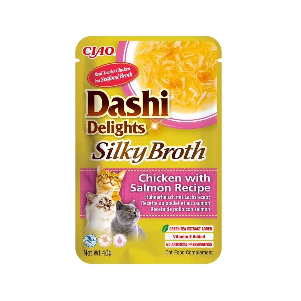 دللي قطتك بتجربة طعم استثنائية مع إينابا داشي ديلايت مرق حريري - دجاج مع سمك السلمون 40 جم ! هذا المرق الحريري المميز مصمم خصيصًا لتلبية احتياجات القطط اليومية، مما يجعله الحل الأمثل لتقديم وجبة شهية ومغذية لمحبوبتك.