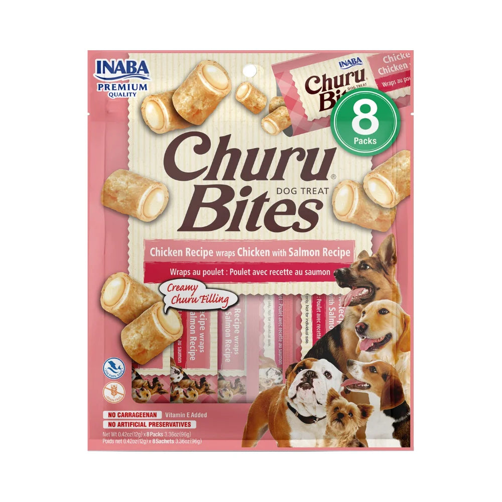 Churu Bites Dog Treats 8 Count ・ Made with 100% pure and natural chicken meat and wild tuna ・ Churu® cream filling inside, tender baked chicken paste outside ・ Contains no grains, preservatives or artificial colors ・ Contains 8 individual packets for maximum hydration ・ Two different textures in one bite
