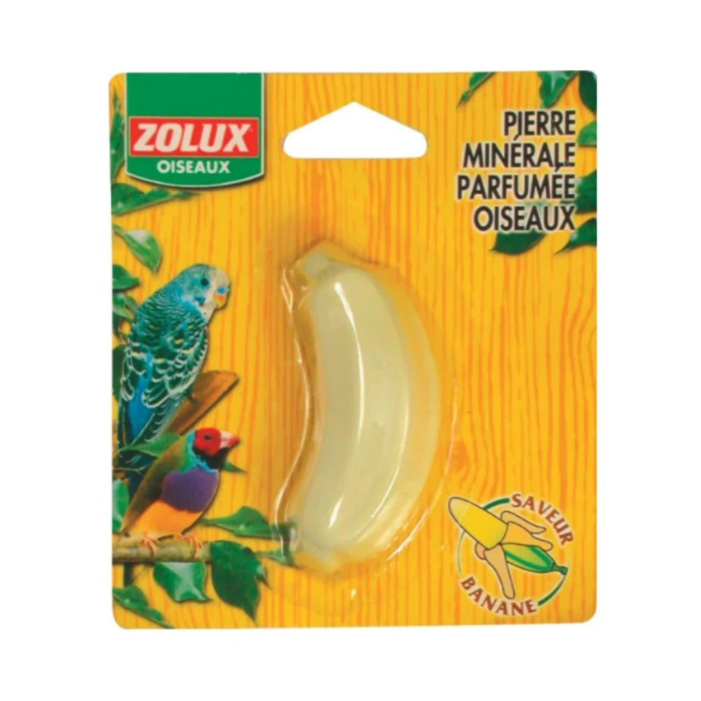 Zolux Mineral Stone for Birds Banana Flavor Mineral stone to provide minerals for good bird growth. Attractive shape and banana flavor helps in chewing and beak maintenance This stone helps to strengthen and treat the beak