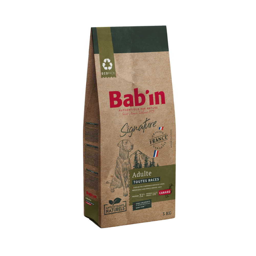 بروتين البط المجفف (25%)، الذرة، الأرز الأبيض من كامارج، بروتين الدجاج المجفف (9%)، دهن البط، مسحوق البيض (4%)، خميرة البيرة (3.3%)، بروتين الذرة، لب البنجر، دقيق السلمون (2%)، بروتينات حيوانية مهدرجة (2%)، لجنوسيليوز، زيت الأنشوجة والسردين البري (1.2%)، بذور الشيا، جلوكوزامين مصدره البحار، سلفات الشوندرويتين، جدران خلايا الخميرة (غنية بـ β-جلوكانات وMOS)، إنولين الهندباء (FOS)، يوككا شيديغيرا، كامليا سب.، كويلايا سابوناريا.