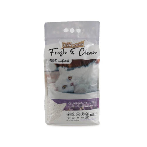 يتميز برينسس فريش آند كلين بتركيبته الفريدة القابلة للتكتل بقوة، مما يضمن سهولة التنظيف ويحافظ على صندوق الرمل نظيفًا وخاليًا من الروائح الكريهة لفترات طويلة. الرائحة العطرة للّافندر تمنح محبوبتك بيئة هادئة ومنعشة، بينما تعمل التركيبة الماصة على امتصاص السوائل بشكل فعال وتقليل الروائح غير المرغوب فيها.