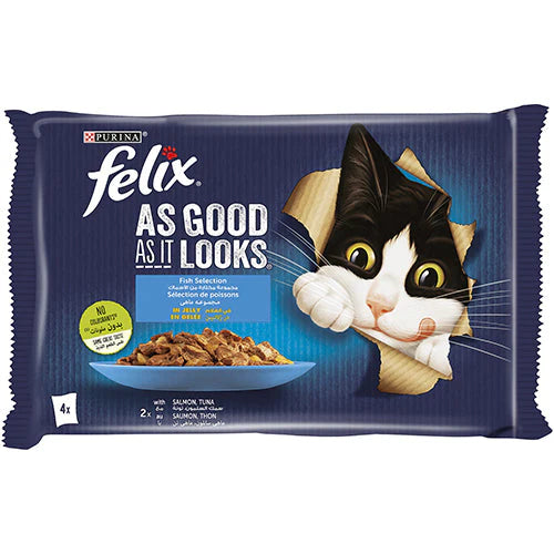 بورينا فيلكس للقطط مجموعة السمك السالمون والتونة وجبات في الهلام 4×85غ