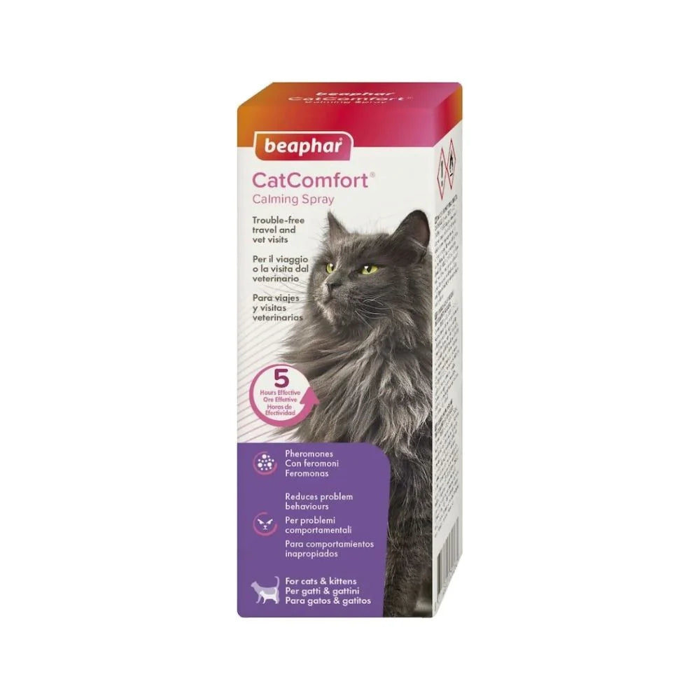 بيفار كات كومفورت بخاخ مهدئ للقطط ، يمكنك استخدامه في الحالات التي تلاحظ فيها زيادة التوتر لدى القط ، أو في حالات السفر أو الانتقال لمنزل جديد، لا يحتوي على أي مواد ضارة بالقطط ، ويمكنك استخدامه بأمان لقططك المنزلية .