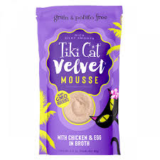 تيكي كات فيلفيت موس دجاج و بيض في مرق طعام رطب للقطط في ظرف 80 جراممكوناتدجاج ، مرق دجاج ، بيض مجفف ، زيت بذور عباد الشمس ، فوسفات ثلاثي الكالسيوم ، صمغ