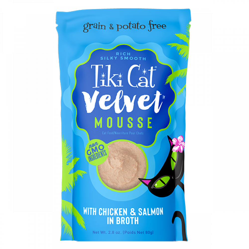 مرق الدجاج ، الدجاج ، السلمون ، البيض المجفف ، زيت بذور عباد الشمس ، فوسفات ثلاثي الكالسيوم ، صمغ الزانثان ، كلوريد البوتاسيوم ، كلوريد الكولين ، كبريتات المغنيسيوم ، الملح ، التورين ، كبريتات الحديدوز ، أحادي نيترات الثيامين (فيتامين ب 1) ، مكمل فيتامين هـ ، النياسين (فيتامين B3) ، أكسيد الزنك ، مكمل فيتامين أ ، البيوتين ، مكمل فيتامين ب 12 ، مخلّب الأحماض الأمينية النحاسية ، أكسيد المنغنيز ، بانتوثينات الكالسيوم ، مكمل الريبوفلافين (فيتامين ب 2) ، سيلينيت الصوديوم ، بيريدوكسين هيدروكلوريد (فيتامين ب 6) ، حمض الفوليك ، يوديد البوتاسيوم ، مركب ميناديون بيسلفيت الصوديوم (مصدر لنشاط فيتامين ك) ، مكمل فيتامين د 3.
