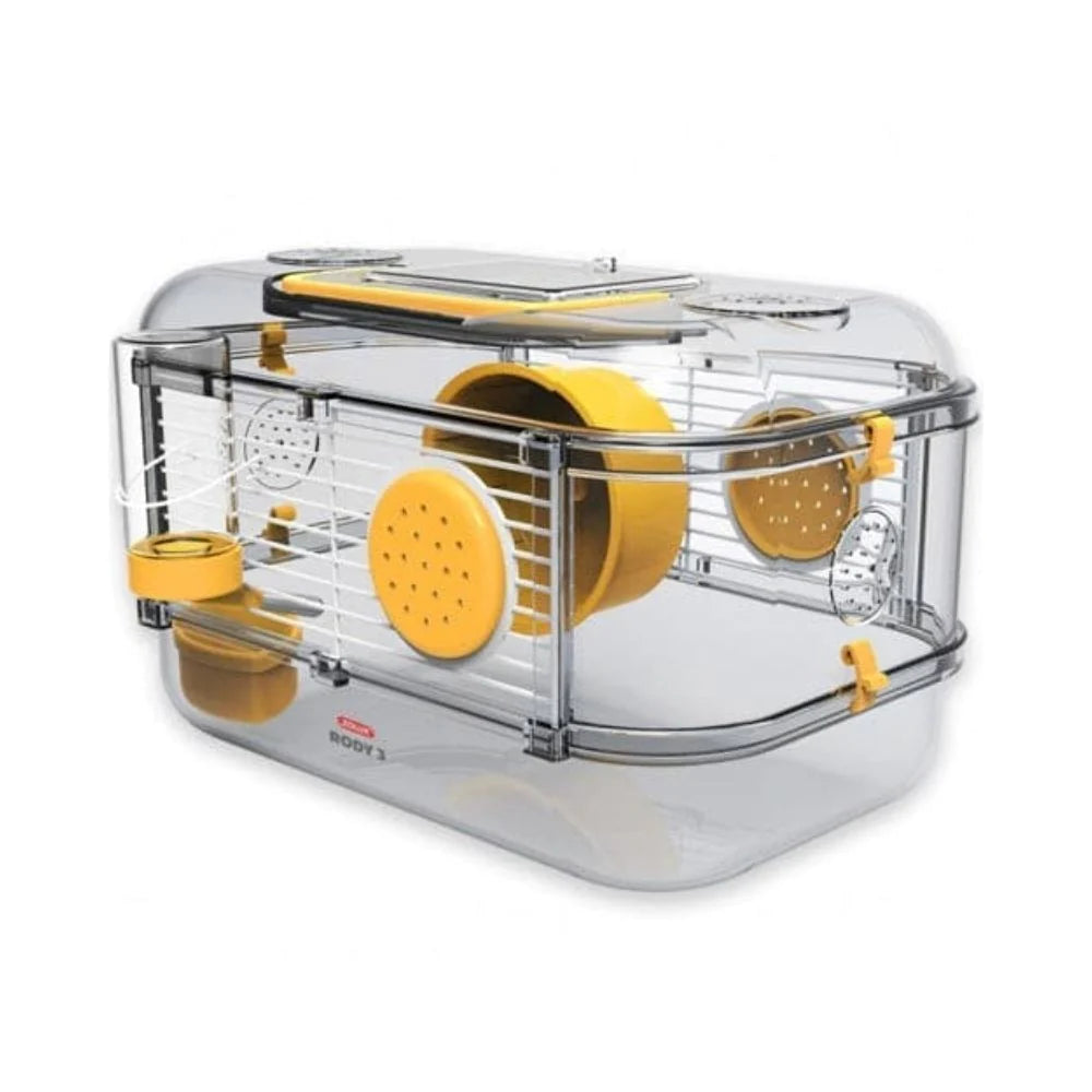 قفص حجم صغير للقوارض اصفر هو المنزل المناسب لتلك القوارض الصغيرة متوفر به أماكن الطعام والماء وكذلك العاب متنوعة للعب والمرح، كما أن حجمه مناسب لتحمله معك في الرحلات والتنقلات
