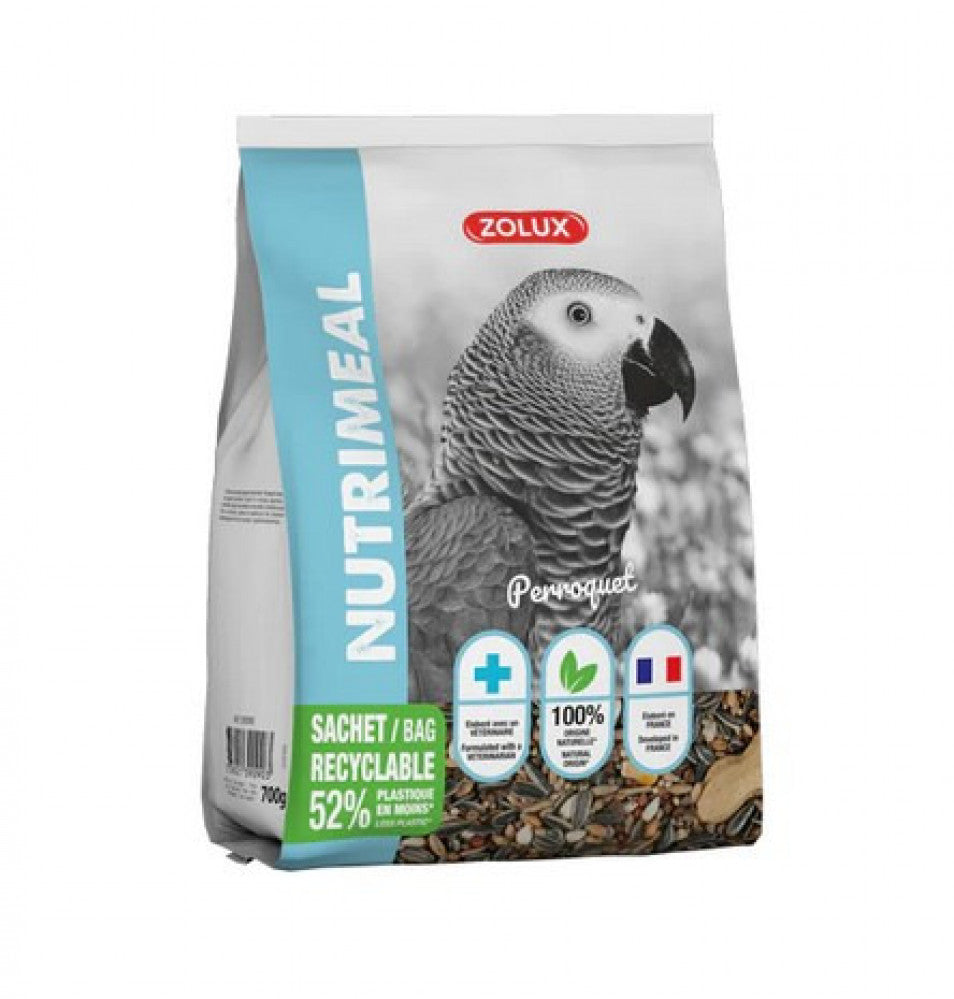 يحتوي مزيج ZOLUX NUTRIMEAL 3 للببغاء على 86٪ من الدخن ، والذي يتميز بقلة نسبة الدهون فيه ، مما يمنع السمنة.