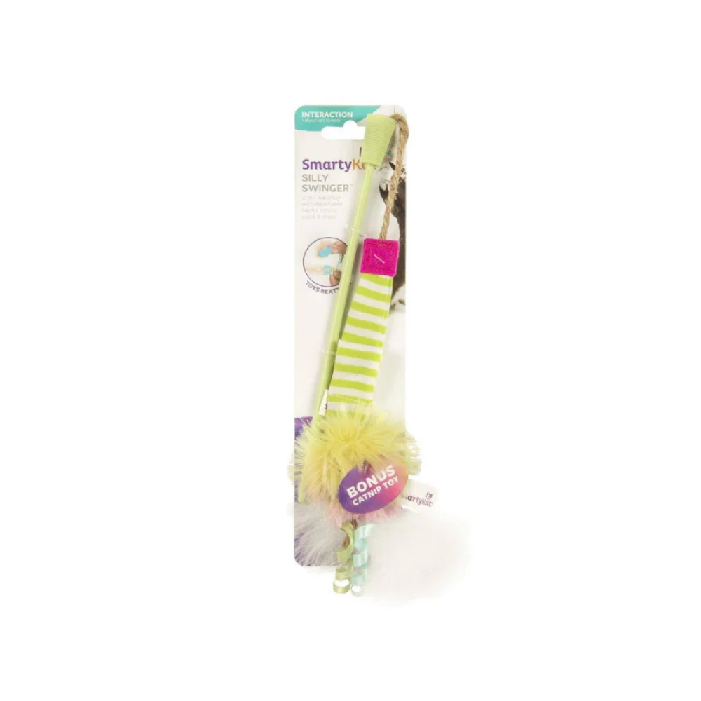 تتميز سمارتي كات سيلي ستيكس واند بتصميمها الفريد الذي يجمع بين العصا الطويلة والمُرَفقات المتحركة التي تحاكي حركات الفريسة. تحتوي اللعبة على أجزاء خفيفة ومتحركة تثير اهتمام القطة، مما يجعلها تقفز وتلعب بشكل طبيعي. كما أن المواد المستخدمة آمنة تمامًا على القطط، مما يجعلها مناسبة للعب اليومي.