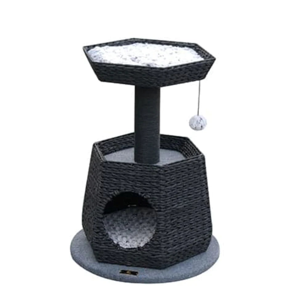 - بيت مع خداشة وسرير للقطط يساعد، على توفير مساحة خاصة لقططك للراحة والاسترخاء ،