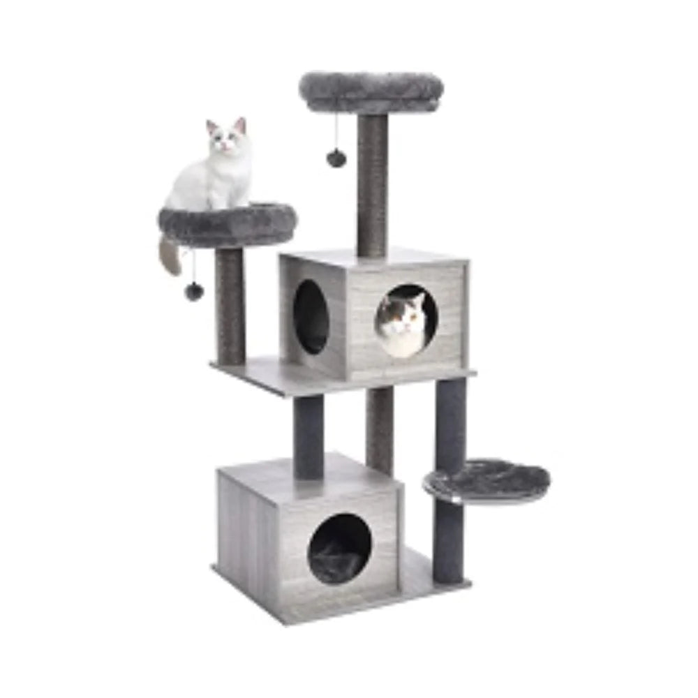 - بيت مع خداشة وسرير للقطط يساعد، على توفير مساحة خاصة لقططك للراحة والاسترخاء ،