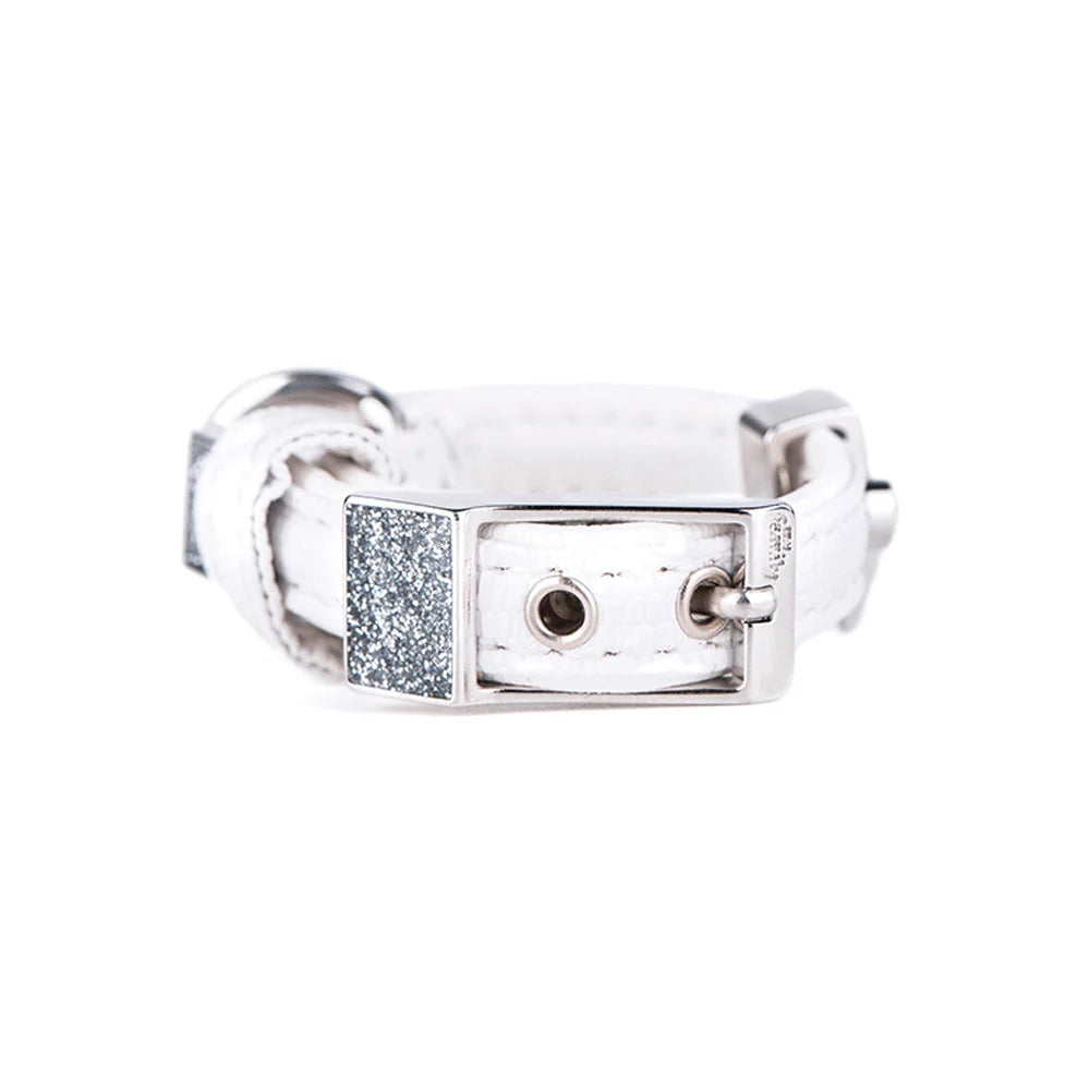 بفضل تصميمه الأنيق باللون الأبيض النقي، يضفي هذا الطوق لمسة من الأناقة والتميز على إطلالة كلبك. أبعاده المدروسة تناسب الكلاب الصغيرة الحجم، حيث يوفر الملاءمة المثالية دون التسبب في أي انزعاج لرقبة الكلب. كما يأتي الطوق بمثبت معدني قوي لضمان الأمان أثناء المشي أو اللعب.