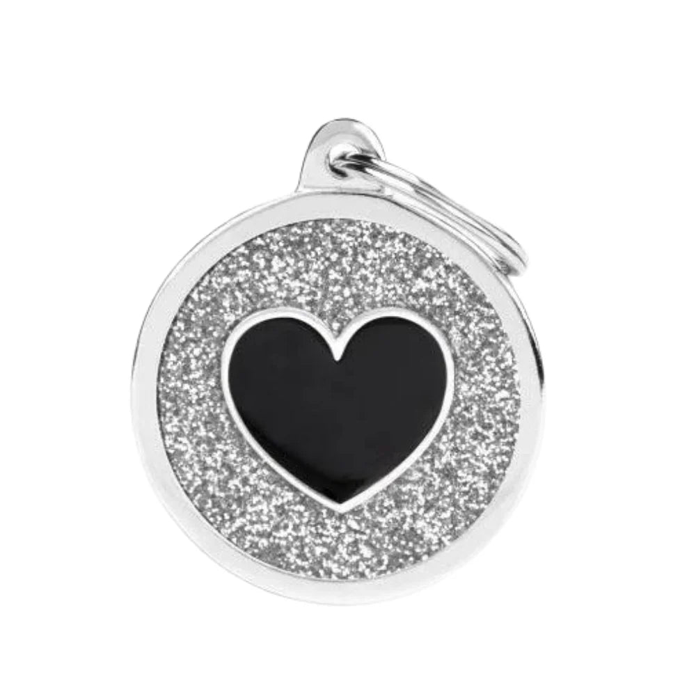 ماي فاميلي قلادة اللون الرمادي اللامع الدائري قلب أسود