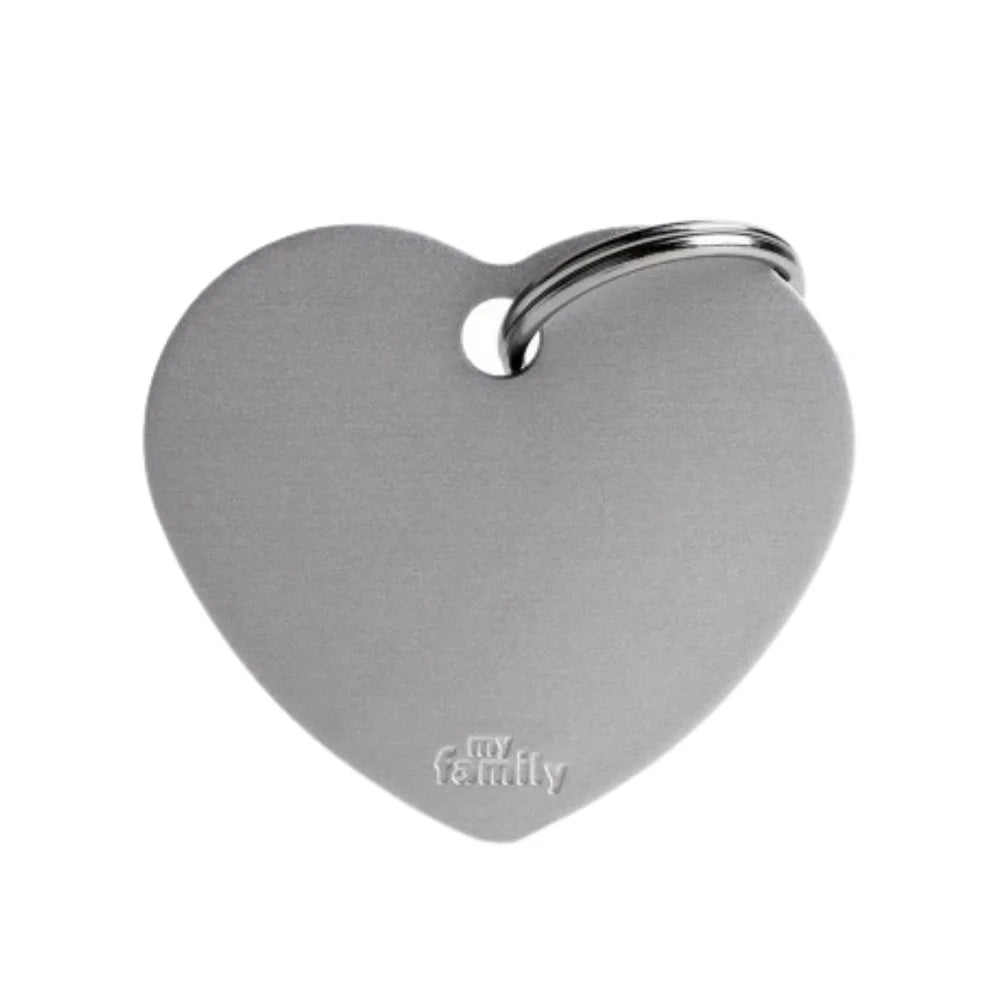 ماي فاميلي قلادة المونيوم شكل قلب لون رمادي حجم كبير