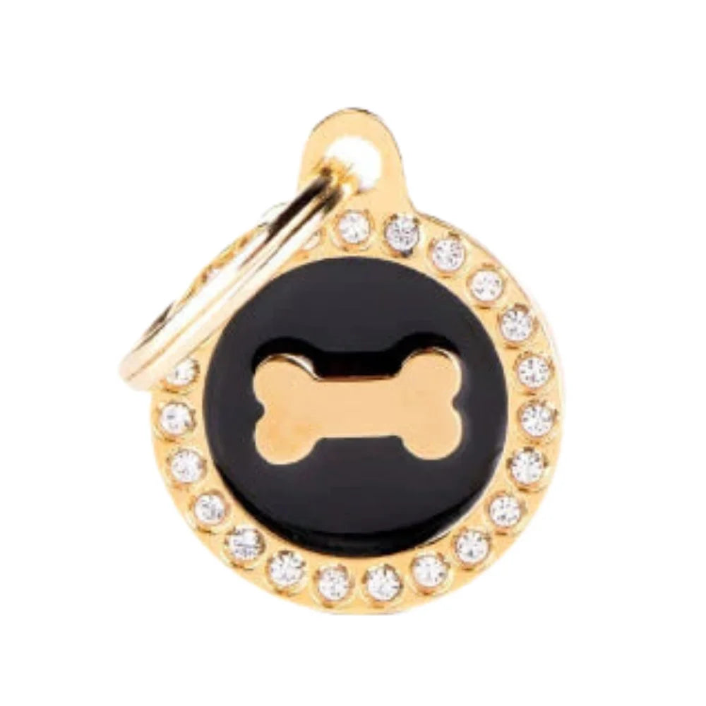 ماي فاميلي قلادة عظم على شكل دائرة اسود لماع ذهبي صغيرة