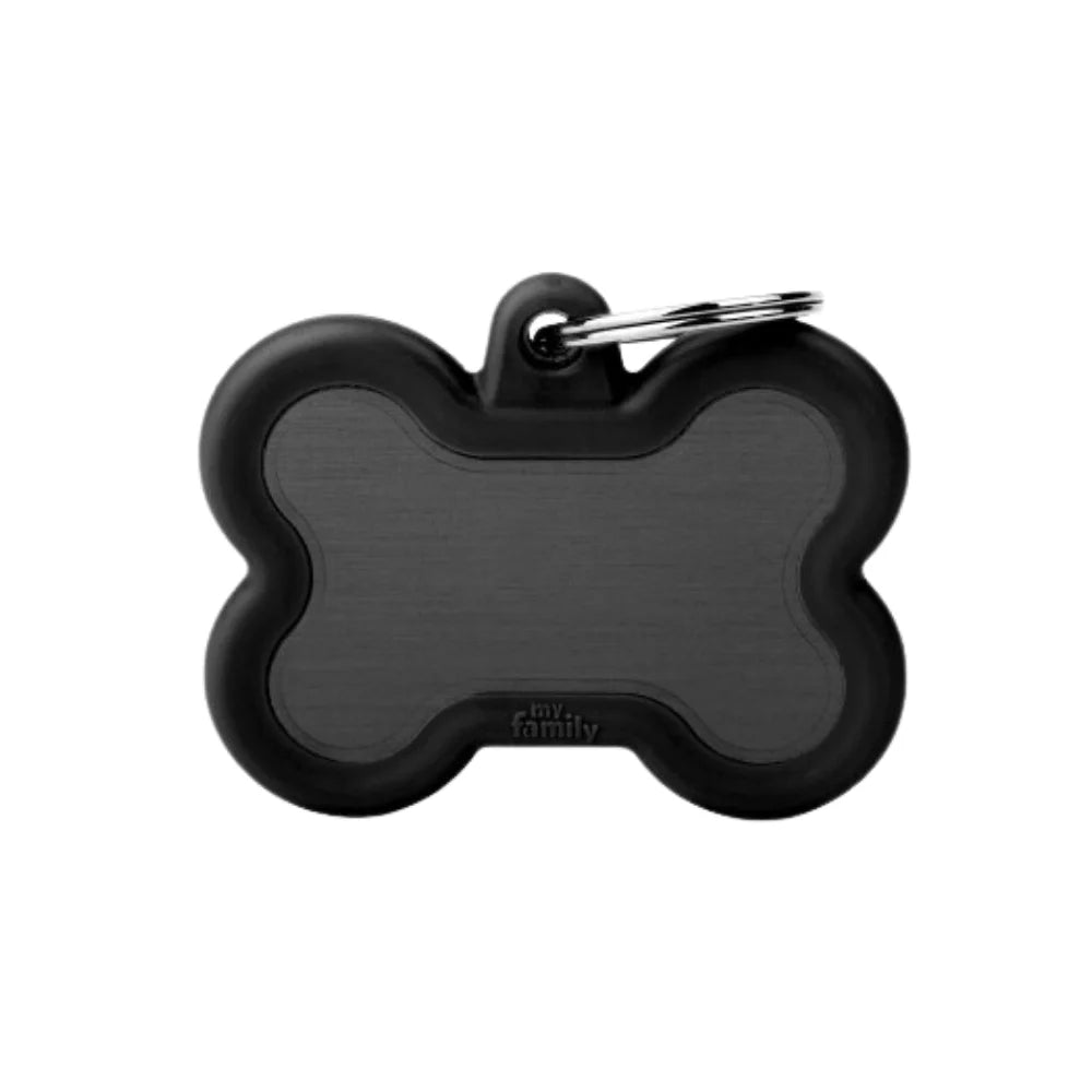 ماي فاميلي قلادة على شكل عظمة اسود مع اطار جلد