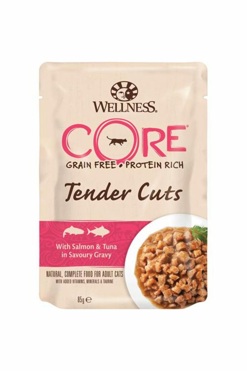 يتميز ويلنس كور تندر كتس بمكوناته الطبيعية الغنية بالبروتينات العالية الجودة المستخرجة من التونة والسلمون الطازجين، مما يعزز صحة القطط ويضفي نكهة بحرية لا تقاوم. قطع التونة والسلمون المغمورة في المرق الشهي تقدم تجربة طعم غنية تأسر قلوب القطط، مع توفير التغذية اللازمة لدعم نشاطها اليومي. كما أنه غني بالأوميغا 3 التي تعزز صحة الجلد والفراء، بالإضافة إلى الفيتامينات التي تعزز المناعة العامة.