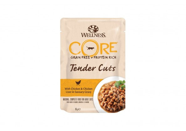 ويلنس كور تندر كتس أكياس دجاج وكبد الدجاج في المرق للقطط 85 جم