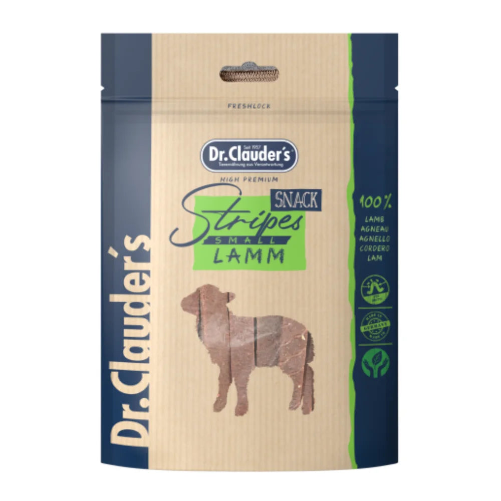 تتميز سناكس ستريبس د. كلاودرز بقوامها المقرمش والمصنوع من لحم الضأن الطبيعي الغني بالبروتينات الأساسية التي تعزز صحة كلبك وتساهم في تحسين نشاطه اليومي. الحجم الصغير والمثالي (80 جم) يجعلها مناسبة كوجبة خفيفة يومية بدون الإفراط في السعرات الحرارية.